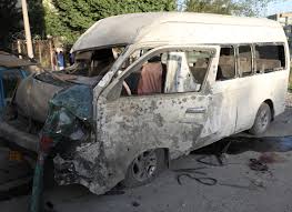 At least seven people were wounded in the evening rush hour attack. Pictures showed a white minibus with extensive damage to its front.