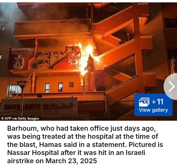 Barhoum, who had taken office just days ago, was being treated at the hospital at the time of the blast, Hamas said in a statement.