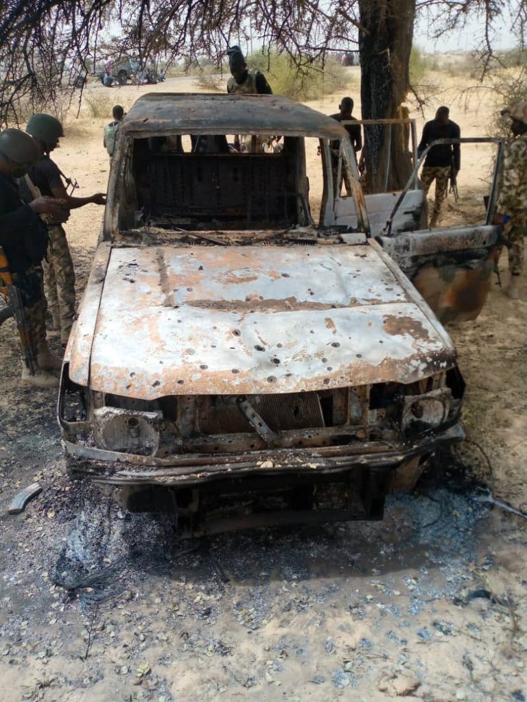 On the night of Saturday, April 10, three other terrorist Commanders including Ameer Umar, Abu Ubaida and Abu Salim were ambushed and killed by own troops around Wulgo / Logomani axis close to Cameroon borders while attempting to attack locals and rustle their cows. The devastating air strikes and artillery bombardment on the ISWAP camps had pushed the surviving elements to conduct desperate attacks and looting missions for food and drugs for their wounded colleagues.