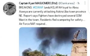“Yes, ISWAP is currently attacking Askira town. I was reliably informed that our troops are fighting them, but the residents are in the bush.