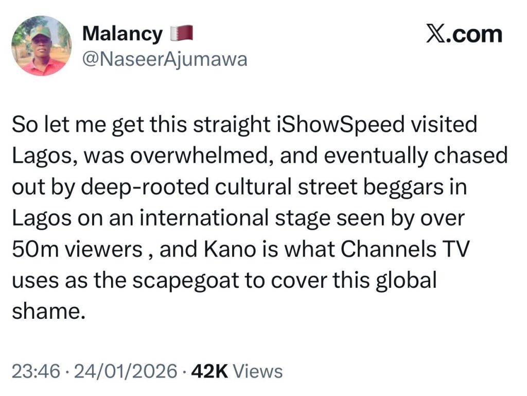 Former presidential aide, Bashir Ahmad, has lamented about the seeming under reporting of the street beggars that accosted US streamer, Ishowspeed during visit to Lagos state.