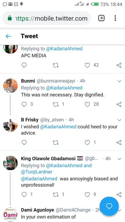 The Candidate anchor, Kadaria Ahmed took to her twitter page to share a quote by Nichiren Daishoni “It is an honour to be despised by fools” after being criticized for being biased in the just concluded interview with the PDP presidential candidates.