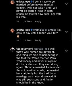 When an Instagram user told her that it is easy to say, Ese responded by saying that it’s fine to take sides but Pero’s man won’t tolerate such if she was in a relationship.