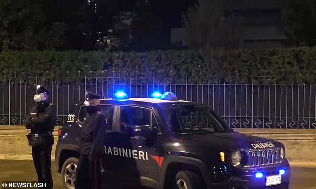 Italian police outside the eastern Italian home of Vito Cangini, 80, who allegedly stabbed his wife to death after she refused to sleep with him