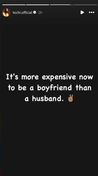 Known for his bold opinions on relationships, Tochi stated that being a boyfriend has now become more financially demanding than being a husband.