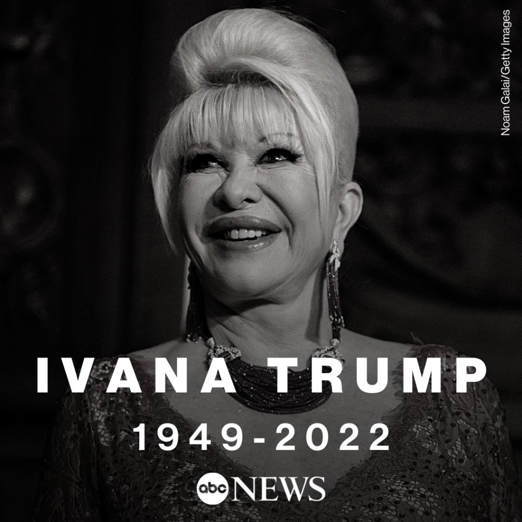 “I am very saddened to inform all of those that loved her, of which there are many, that Ivana Trump has passed away at her home in New York City,” former President Donald Trump said in a statement. “She was a wonderful, beautiful, and amazing woman, who led a great and inspirational life.”