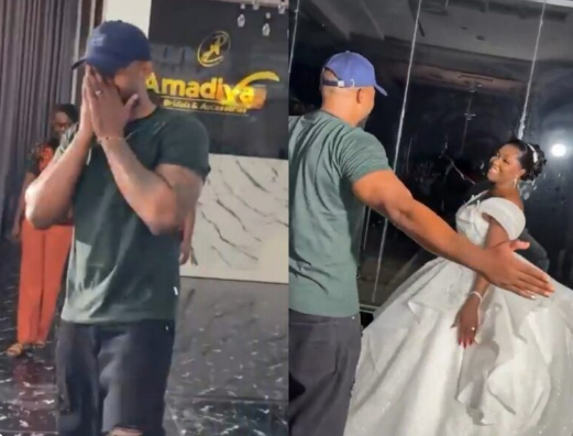 A video that surfaced online showed the moment Blessing CEO tried on her wedding dress.