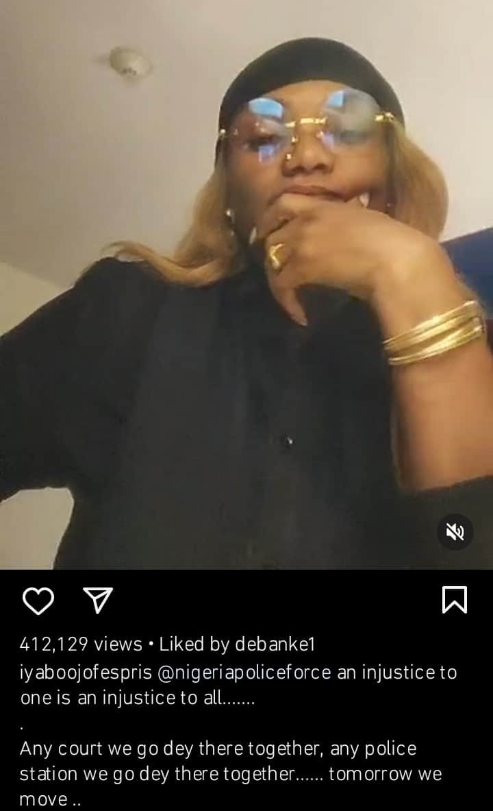 Now, Iyabo Ojo called out the Nigerian Police, informing them that an injustice done to one is an injustice done to all in a now-deleted video on her Instagram page.
