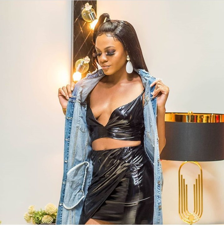 The former Big Brother Naija housemate wore a two-piece outfit that showed off her midriff and cleavage.