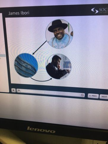 A Nigerian Twitter user@Miss_Funmi who schools abroad took to her page to share a post which shows a photo of James Ibori being used as a reference with another man during an anti-bribery course.