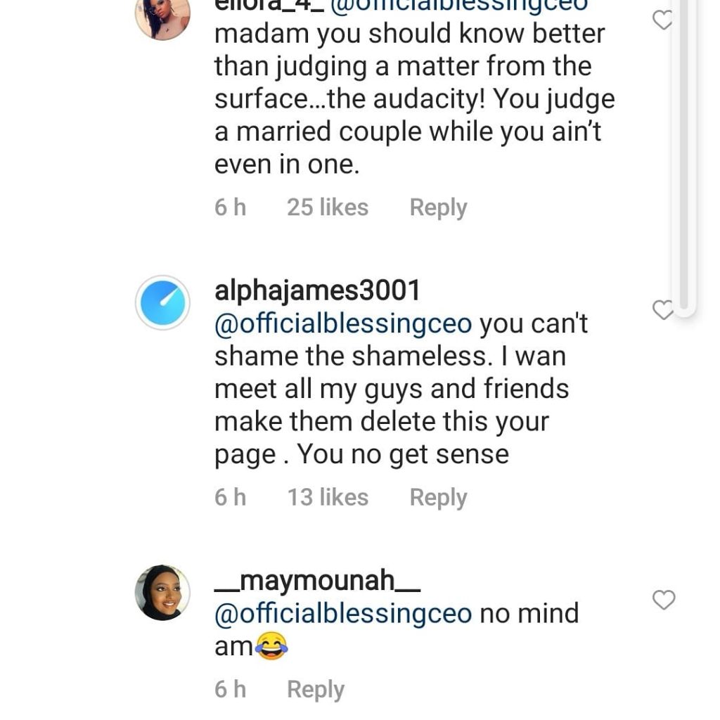 Dear blessingceo or whatever it is you call yourself. Take a look at the Life and Times of everyone involved in this disturbing circle of saga that’s been brewing, take a look at everyone; the singers, actresses, actors, LEGIT business men, do you actually think you have the right to talk in our midst? These are people with talents and are just mere humans making normal human mistakes.