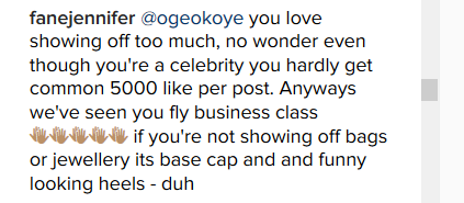 Other fans who didn’t understand her reason for the comment scolded her but the young lady wasn’t spent.