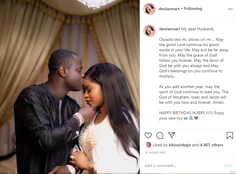 Deola Smart, daughter of Senator Smart Adeyemi has bought a Toyota SUV for her husband and jeweler, Malivelihood as a birthday present.