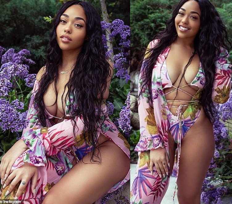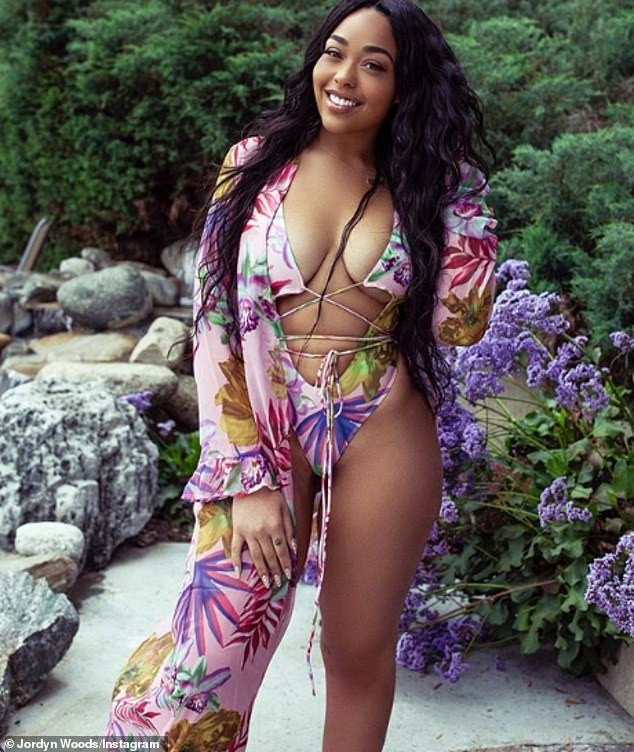 American model, Jordyn Woods, 21, took to Instagram to flaunt her curvaceous body while posing in sexy Icon Swim ‘Ties On the Prize’ monokini.