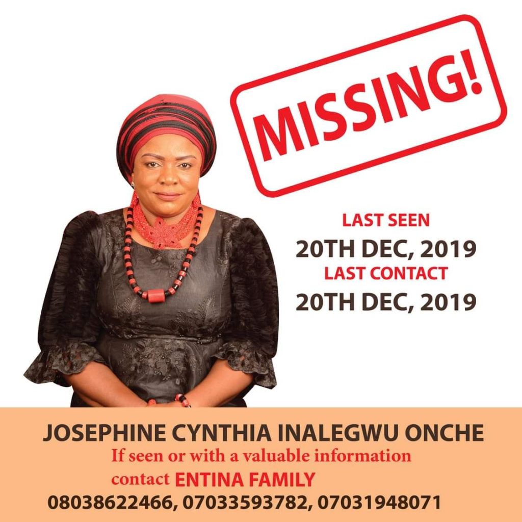 A Nigerian lady, Josephine Cynthia Inalegwu Onche, has been declared missing, just few days to her wedding day.