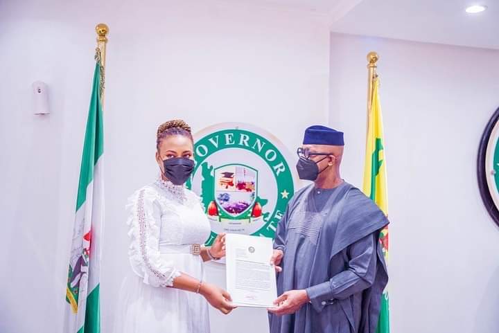 The lady received the gifts during a physical award presentation. Photos of the presentation was shared on Governor Dapo’s Facebook page.