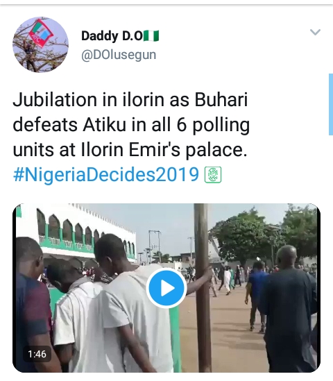 Ilorin residents jubilate as Buhari defeats Atiku in all 6 polling units at Ilorin Emir’s palace.