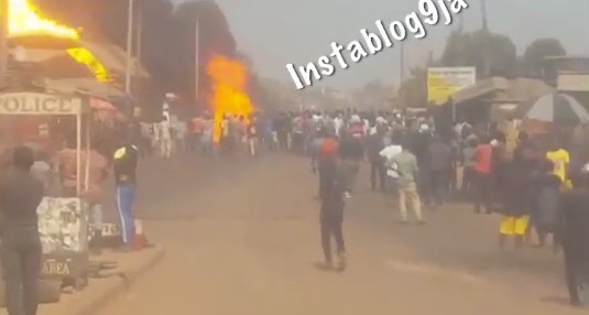 A filing station in Enugu known as Juhel has gone up in flames after a tanker explosion in the area.