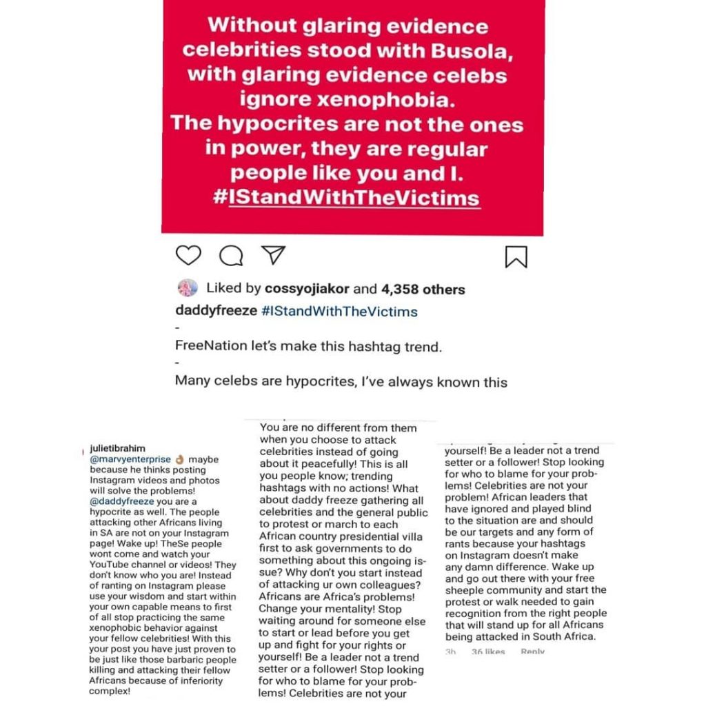 Juliet Ibrahim Slams Daddy Freeze Over His Comment On Xenophobia Attack In SA - 9jaflaver