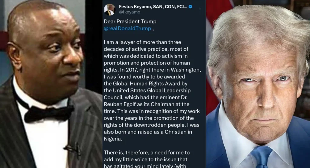 Nigeria’s Minister of Aviation and Aerospace Development, Festus Keyamo, has written an open letter to U.S. President Donald Trump, dismissing claims of widespread killings of Christians in Nigeria.