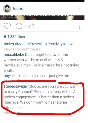 Just look at the rude comment lady dropped on Toolz’s IG picture