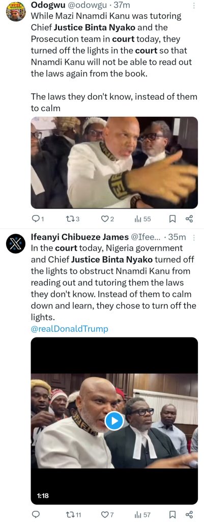 Kanu’s brother, Kanunta, posted a video of the IPOB leader’s arrival, in court and wrote: “10th of February 2025 #MaziNnamdiKanu live at dishonourable Justice Binta Nyako’s court in Abuja, Nigeria.”