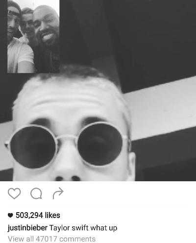 Justin Bieber lets us know whose side he’s on in the Kanye/Taylor Swift beef