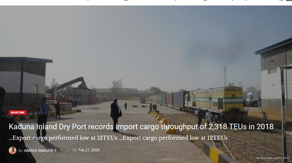 Furthermore, the dry port handled only about 12 TEUs of export cargoes within the period under review.