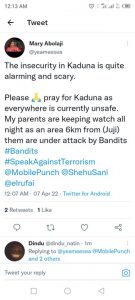 They said the military are trying to repel the terrorist in Zaria while the ones in Chikun are still having field day.