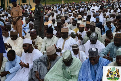 Kaduna State Governor Nasir Ahmad El-Rufai, Chief Justice of Nigeria, Mahmud Mohammed and caretaker chairman of the People’s Democratic Party, Gov. Ahmed Makarfi observed Eid Prayers at the Capital School Eid ground in Kaduna this morning.