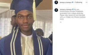 The proud dad shared photos from his son’s graduation ceremony and wrote: “My son, Kosisochukwu Montel Onyekwere, graduated from college yesterday. Please, biko Salute him and felicitate with us. Chileke nde Mbaise imeelaaa oooo.”