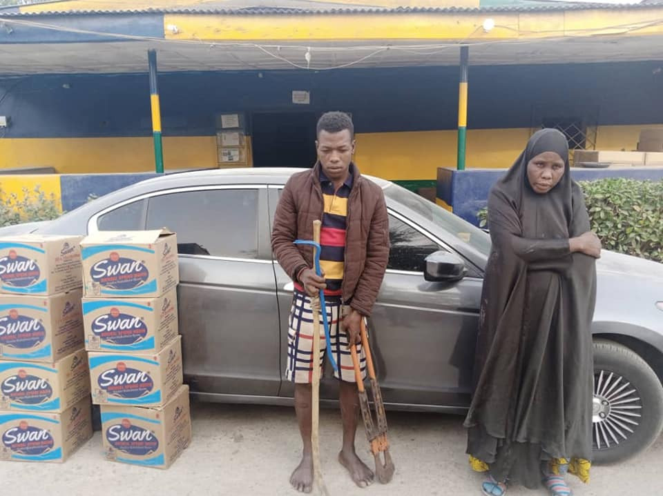 “On the 19/01/2021 at about 0330hrs, team of Operation Puff Adder led CSP Alabi Lateef while on intelligence-led patrol along Zaria Road Kano arrested one Hauwa Mustapha, ‘f’, 47 years old, of Naibawa Quarters, Kano and one Auwalu Ibrahim, ‘m’, 28 years, of Brigade Quarters Kano, while driving a Motor Vehicle Honda Accord, Ash in colour, moving in a suspicious manner,” said Haruna.
