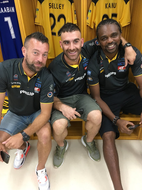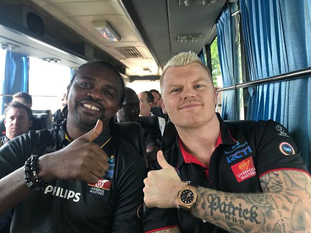 He shared some photos on social media with the likes of former Pompey and England goalkeeper, David James, Former Liverpool Left-back, John Riise, Former Arsenal Midfielder, Robert Pires and others.