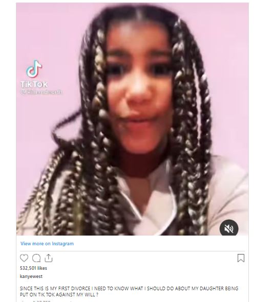 “Since this is my first divorce I need to know what I should do about my daughter being put on [TikTok] against my will?” the Donda 2 artist said in the post, notably tagging Kim Kardashian.