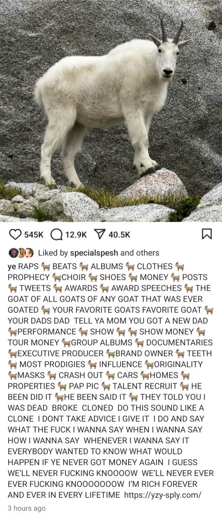 In a follow-up post, he shared a photo of a goat and crowned himself the “goat of all goats”.