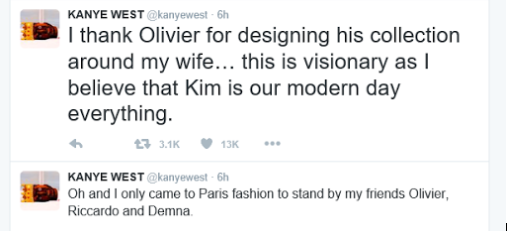Kanye West addressed the issue of his wife’s style, says she is our modern day everything and also addressed issues of fake friends. Read the rest of his tweets below: