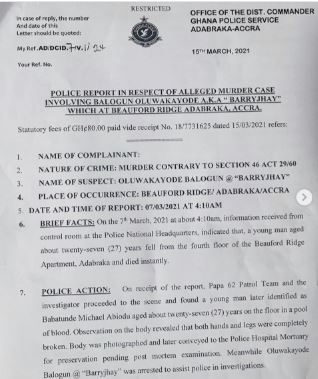 Karshy Gordon's Death: Nigerian Singer Barry Jhay Is Innocent - Ghanaian Police - 9jaflaver