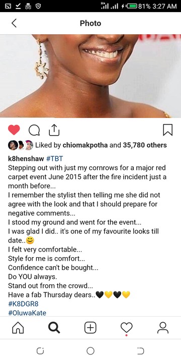 Actress Kate Henshaw has shared a throwback photo which shows her wearing her natural hair at a red carpet event.