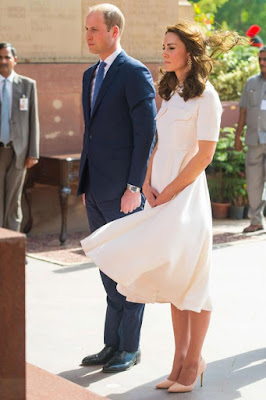 Kate Middleton struggles to control her £1,700 dress as she and husband, Prince William attend Dehli war memorial (See Photos)