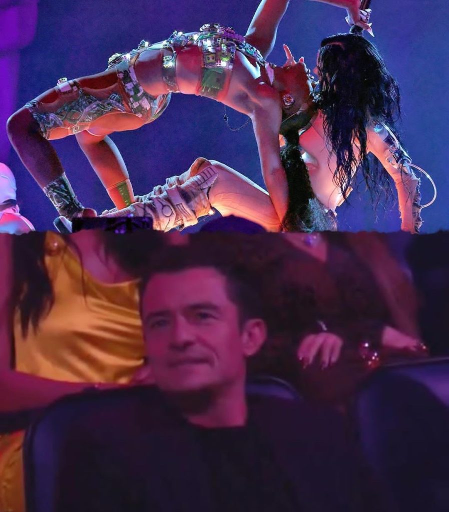 Katy Perry got quite intimate with Doechii while performing on the MTV Video Music Awards stage, and the pop star’s fiance, Orlando Bloom, was in the audience watching on Wednesday, September 11.