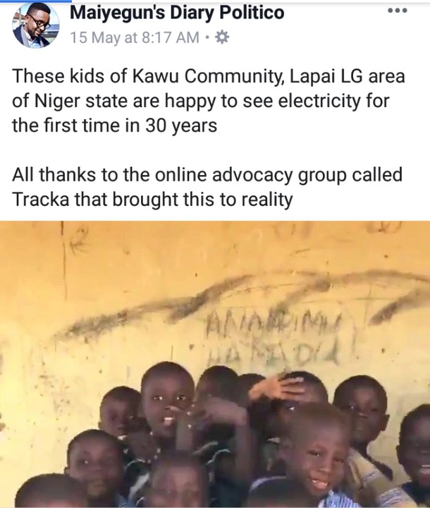 These kids of Kawu Community, Lapai LG area of Niger state are happy to see electricity for the first time in 30 years