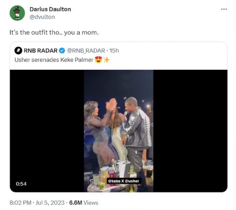 Jackson made a tweet publicly shaming the television personality for the outfit she wore to singer Usher’s show. “It’s the outfit tho… you a mom,” he quote-tweeted a video of Palmer and Usher from the show.