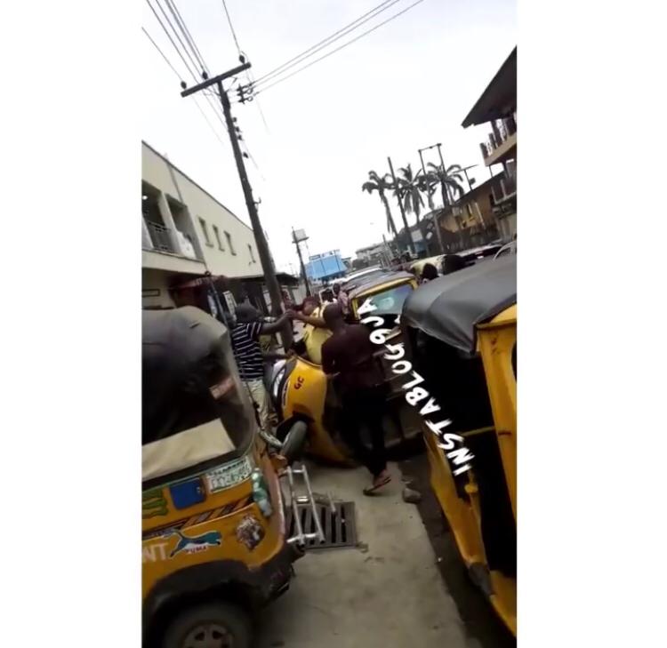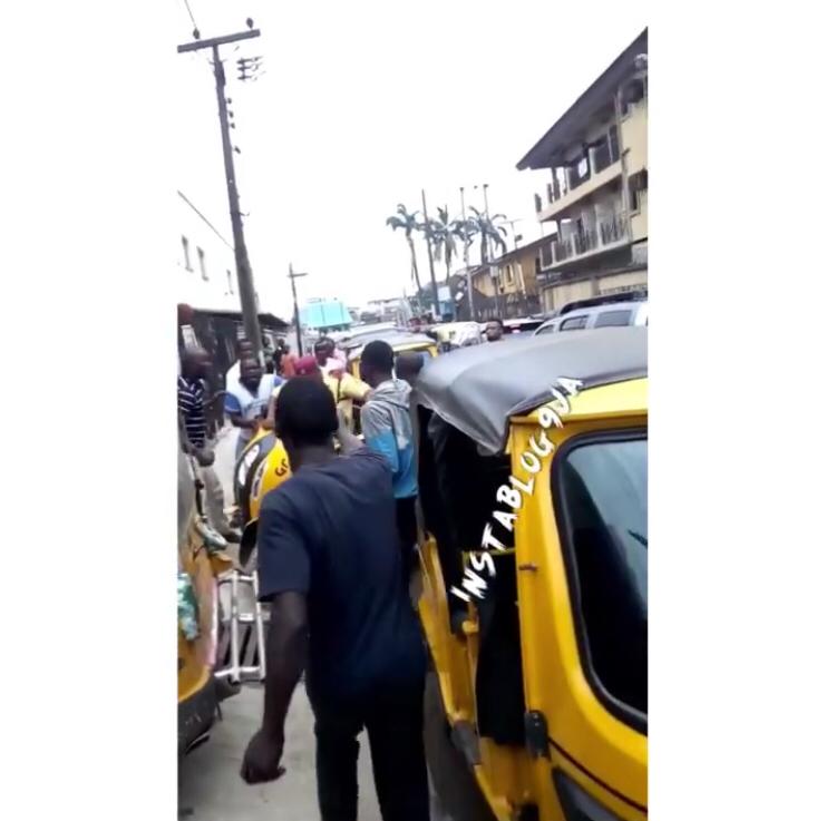 Moment Commercial tricyclists trap a #Lastma official who seized their colleague’s tricycle, today, in Ikeja, Lagos State.