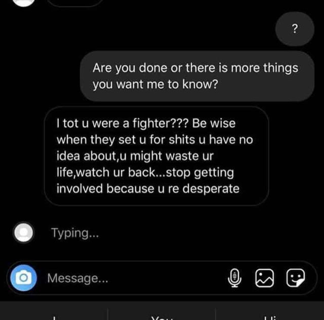 He also released conversations which he claims Mirabel had with his fiancee, in which she was threatening to go diabolical to make sure he begs for food.
