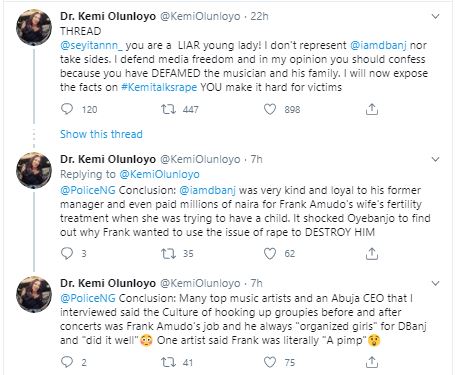 @seyitannn_ you are a LIAR young lady! I don’t represent @iamdbanj nor take sides. I defend media freedom and in my opinion you should confess because you have DEFAMED the musician and his family. I will now expose the facts on #Kemitalksrape YOU make it hard for victims.