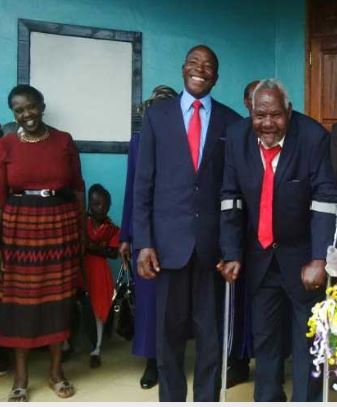 >> Mr Muriuki, 94, walked down the aisle on crutches and arm in arm with his bride.
