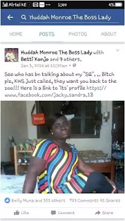 In 2014, popular kenyan runs girl, Huddah Monroe, posted a photo of the lady named, Sandra Otieno, on her Facebook page and blasted her for trolling. The photo went viral and Huddah Monroe’s fans started trolling Otieno calling her ugly.