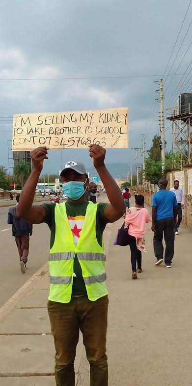 A man has put up his kidney for sale to raise money for his brother’s school fees.
