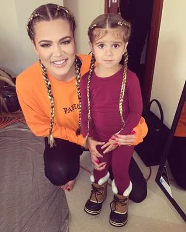Khloe and her nieces,Nori and Penelope rocks matching braids