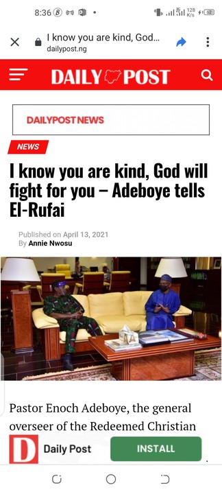 Adeboye said he will be praying for El-Rufai, adding that “when God gets to work, then the world will see it and will glorify the name of God.
